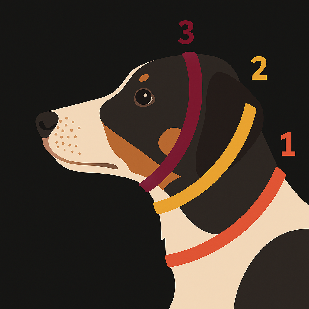 - Wert 1: wie oben beschrieben, den normalen Halsumfang an der Stelle, wo das Halsband später sitzen soll.