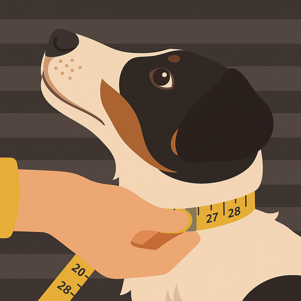 - Miss den Umfang auch nicht, indem du das Maßband im geschlossenen Zustand außen um das Halsband legst – das verfälscht das Ergebnis.