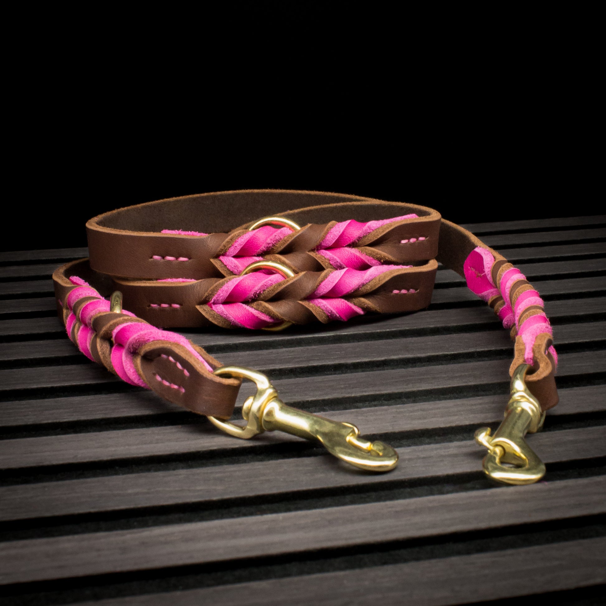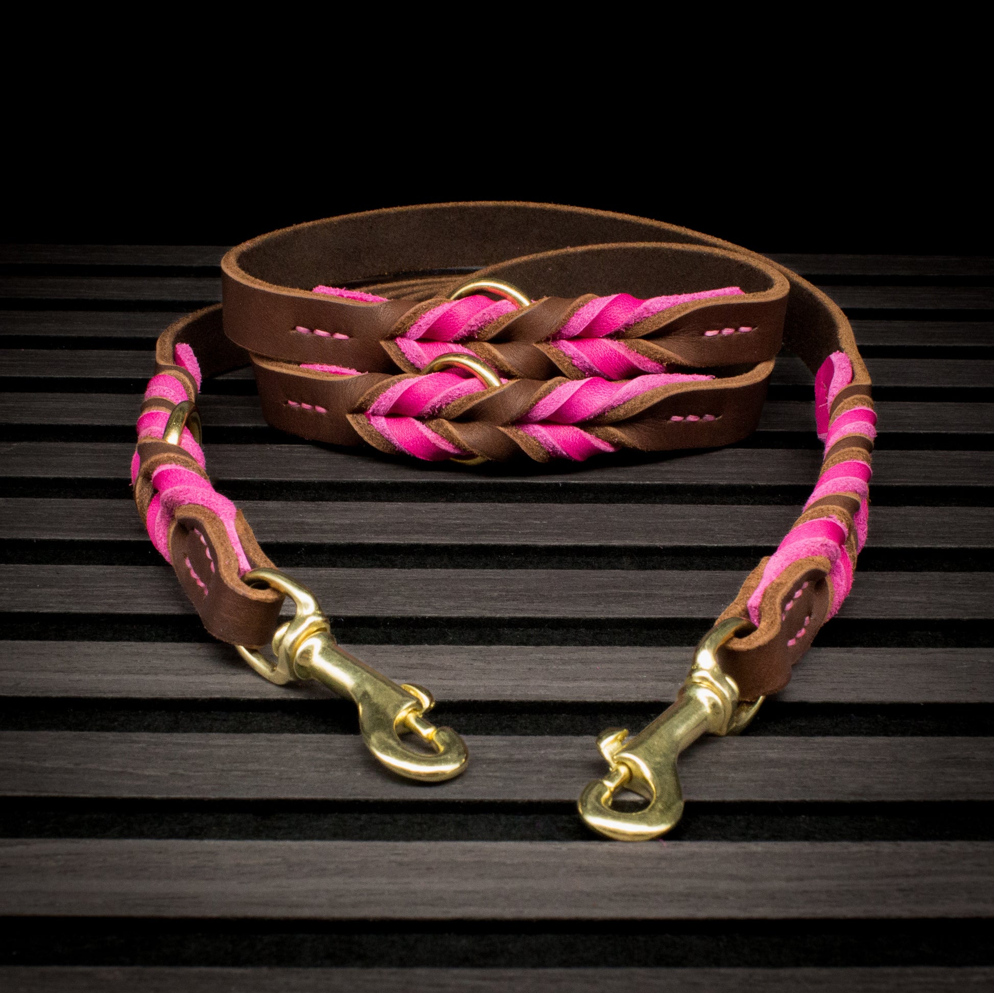 Die 2 m lange Leine ist 3-fach verstellbar und alle Ringe sind eingeflochten.