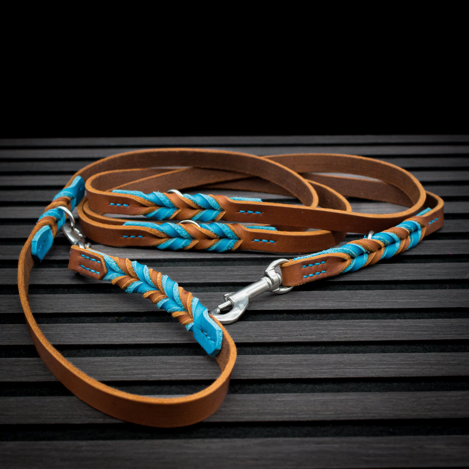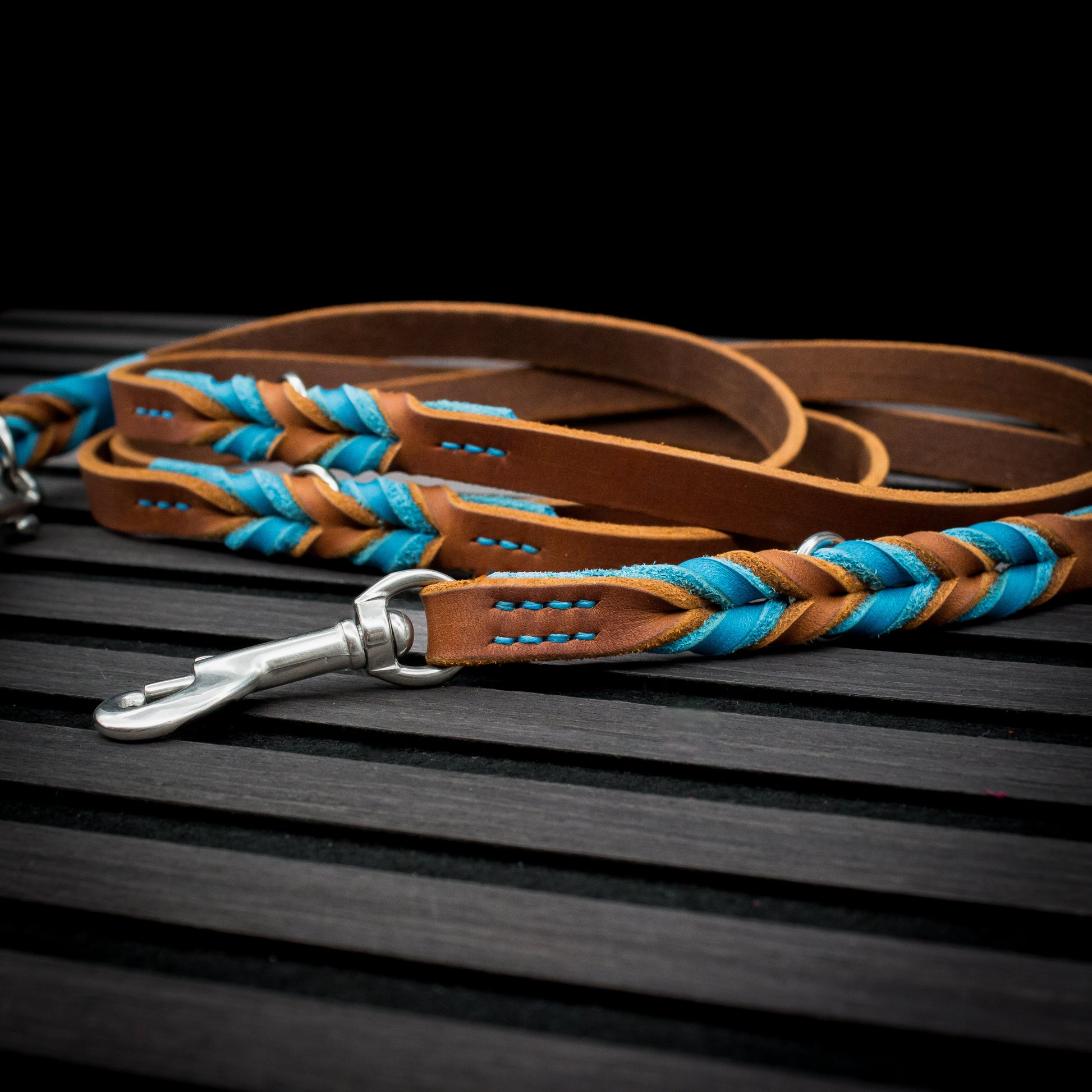 Die 2 m lange Leine ist 4-fach verstellbar und alle Ringe sind eingeflochten.