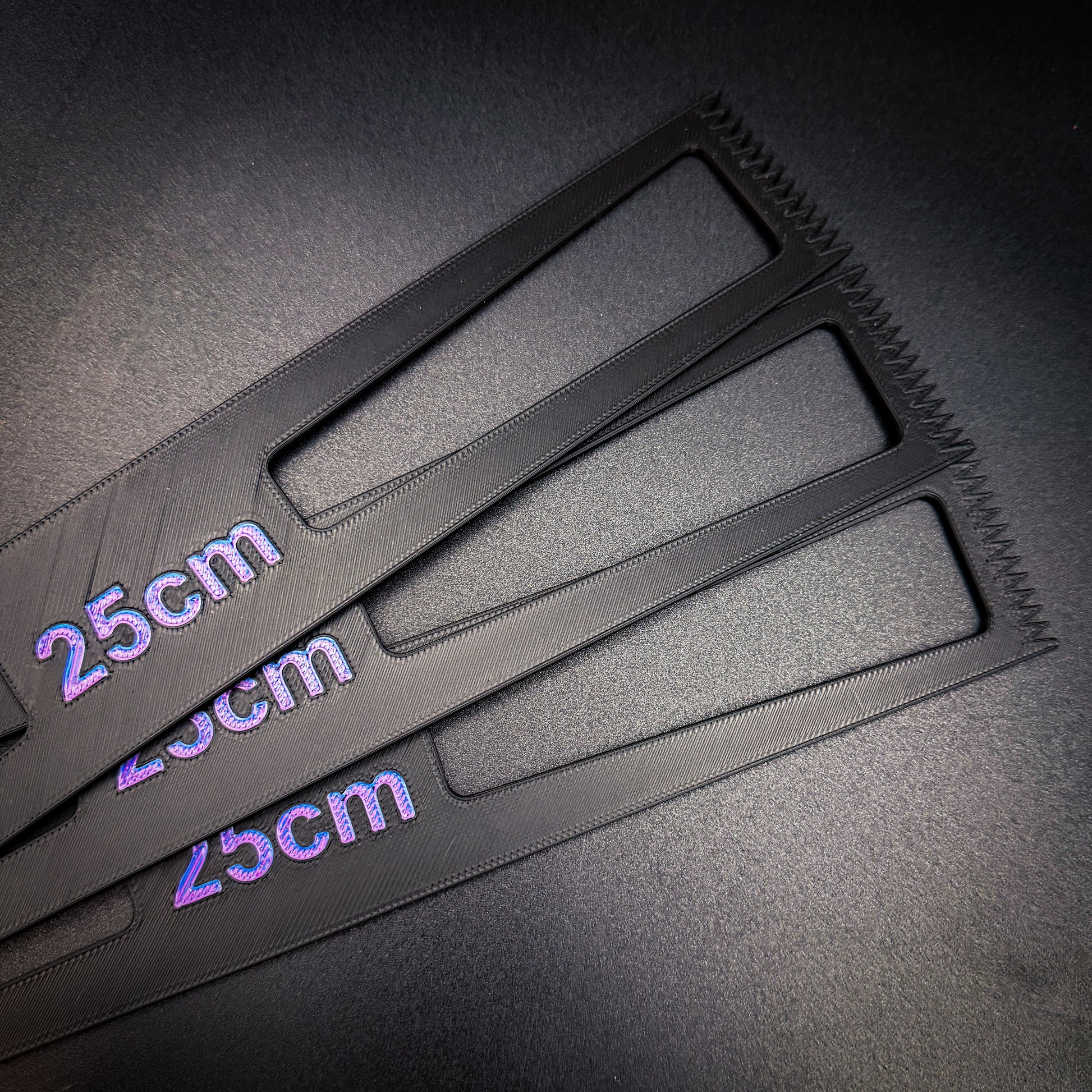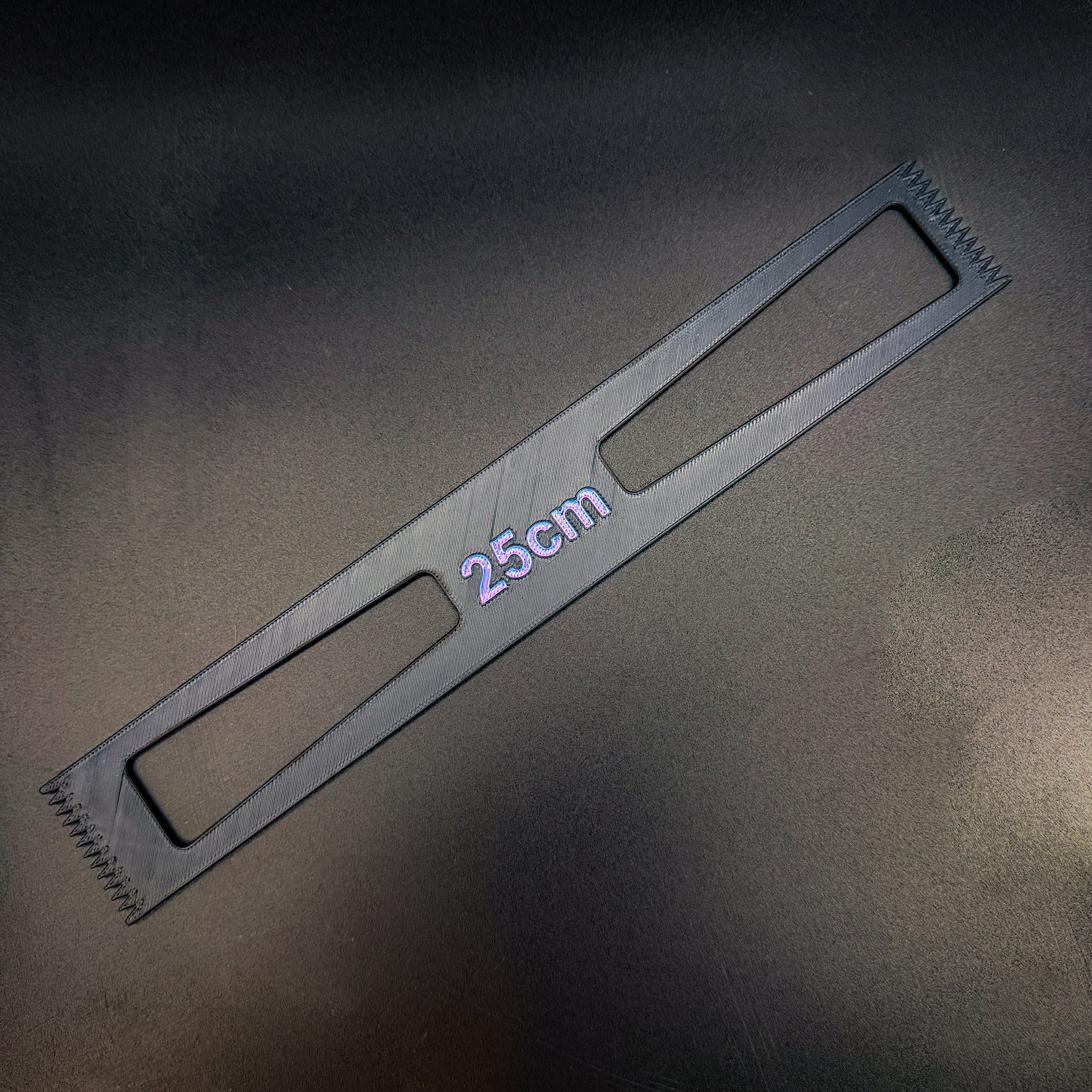 Eine vollständige Umwicklung misst exakt 25 cm Garnlänge. Über die 12 integrierten Kerben lässt sich damit in einem Durchgang eine Länge von bis zu 6 m Nähgarn abmessen – ganz ohne Maßband oder Zollstock.